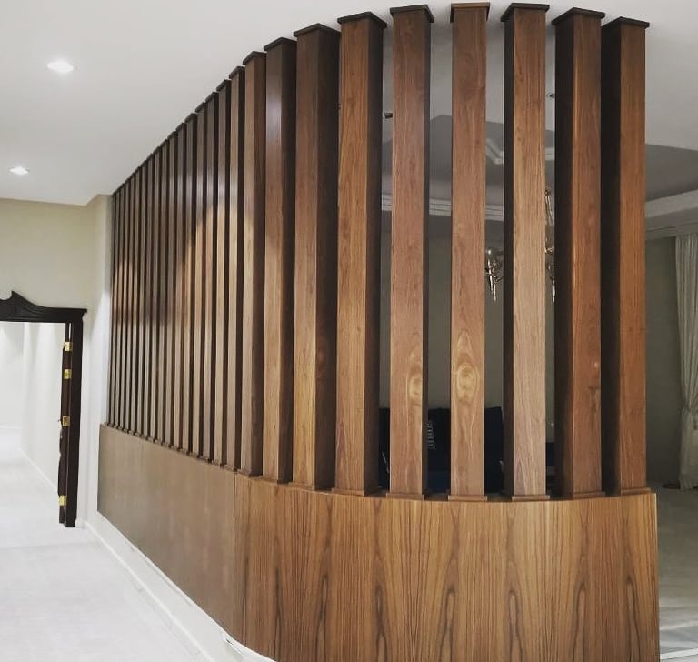 نبدع في تنفيذ الأسقف، الجدران، والقواطع الخشبية التي تضيف لمسة فخامة ودفء لأي مساحة.
